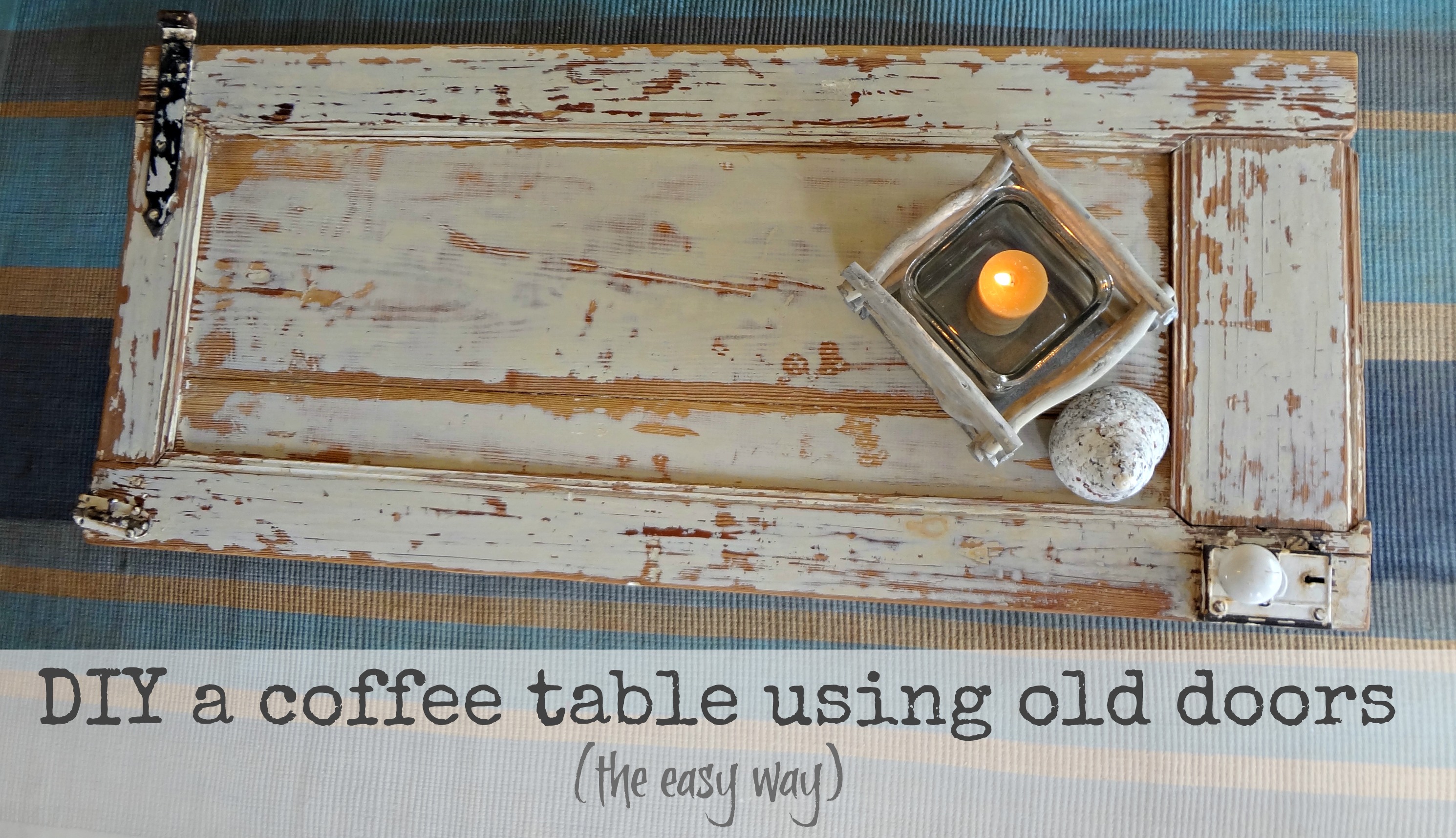 One of our favorite projects we have around our house (well ... we are in the process of moving to Key West from Curacao right now so the more accurate location is on a container ship ... but I digress) is the coffee table I made out of two doors I found in a dumpster.